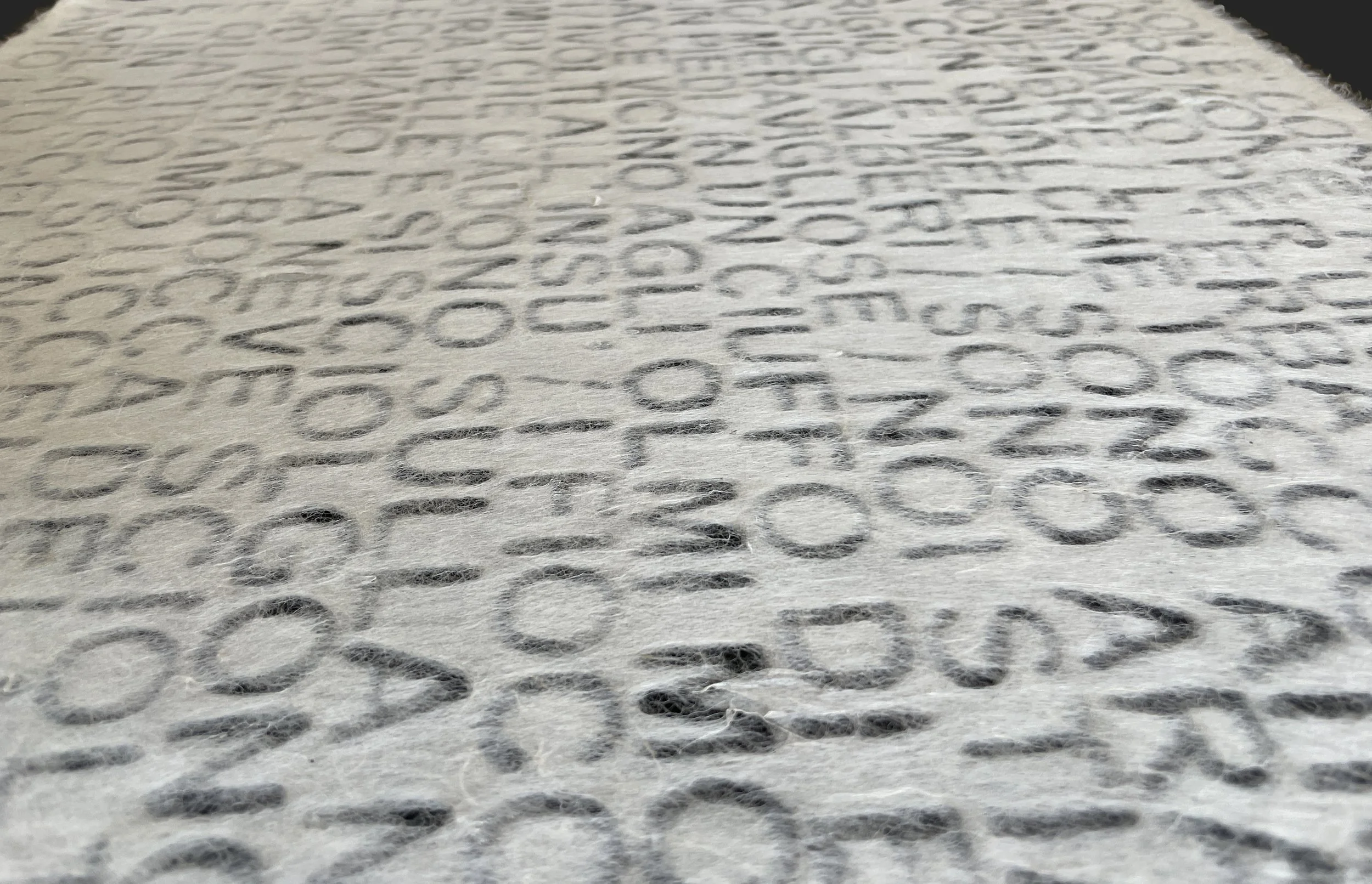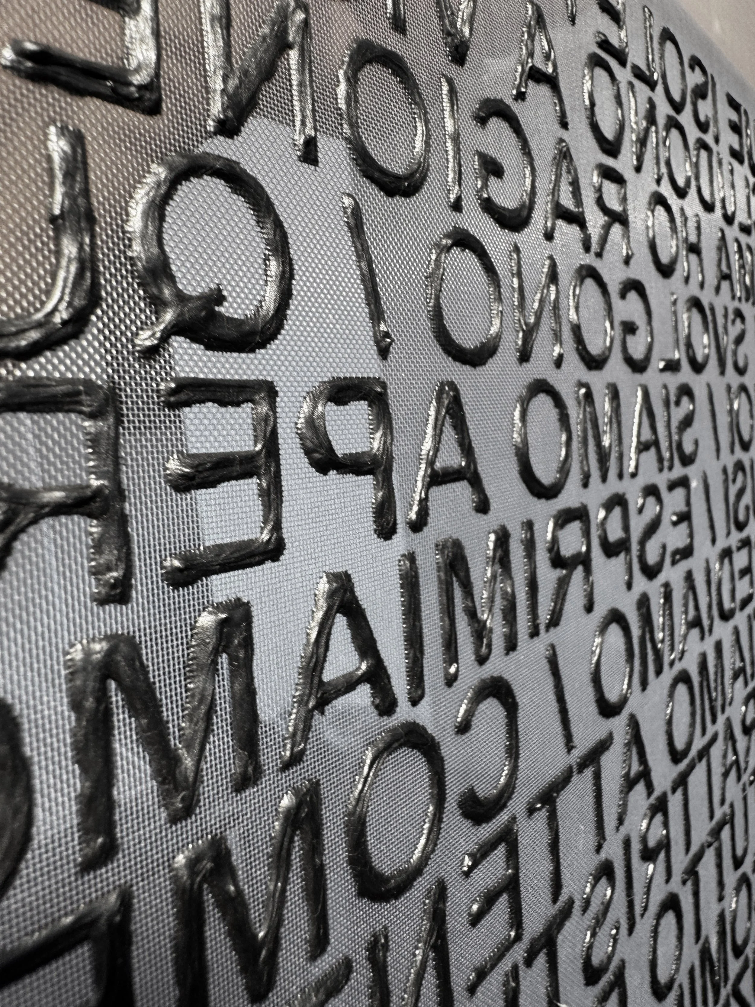 Talk of myths, that which remains forever. Yet nothing is immovable, everything is eroded and reinterpreted by and in time. The stereotypical Circe, bewitching and terrible in her man-transforming alchemy, told by Ulysses' narrative, becomes the protagonist and narrative voice in “Circe/Fango,” Margaret Atwood's anti-heroic counter-odyssey. An exhortation to break free from preconstituted narratives, to imagine another island, another Eea, where female and male humanity can be directed toward new landscapes, new roles and new sharing. Six sheets of handmade paper watermark the words of the twenty-fourth part of the poem. II title “Two Islands” in Esperanto, refers to its etymology, which means to hope.